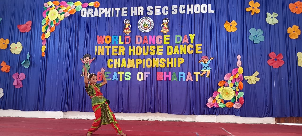 On 29th April 2025, Graphite Higher Secondary School celebrated World Dance Day with great enthusiasm! The FEETBEATS Inter-House Solo Dance Competition saw our young Graphitians shine on stage with performances in Bharatanatyam, Semi-Classical, Classical, Contemporary, and more. The event began with the ceremonial lighting of the lamp, followed by inspiring words from our Principal. Renowned dance institute judges from Bhopal provided valuable feedback to participants. The competition aimed to develop creativity, self-expression, and confidence through dance, and our students displayed talent, discipline, and sportsmanship. Kudos to all for making the event a grand success!
